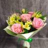 Изящный букет из 5 роз и 4 ярких желтых альстрометрий привлечет внимание своими нежными соцветиями и изящными формами. Такие цветы придут по нраву целеустремленным, деловым и энергичным женщинам. Идеальный подарок для коллеги на любое торжество. Ведь внешне он выглядит нестандартно и экзотично, что точно привлечет женское внимание.